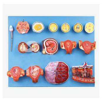 受精與早期胚胎發(fā)育過(guò)程模型 GD/A42002功能介紹■該模型由精子、卵巢、卵子、受精卵發(fā)育過(guò)程、胚盤(pán)、2-9周胚胎以及3月胎兒、胎盤(pán)等16個(gè)部件組成,并顯示從卵細(xì)胞發(fā)育到3月大小胎兒形成的人類早期胚...