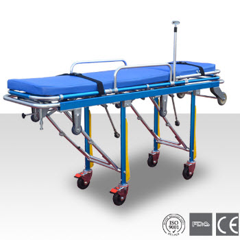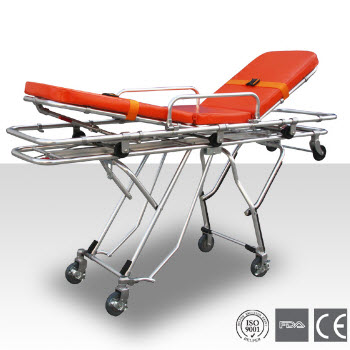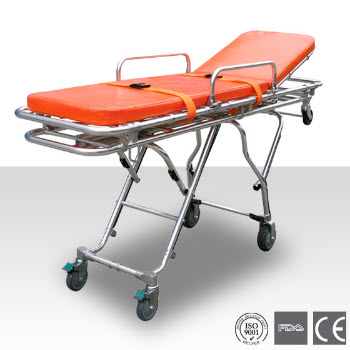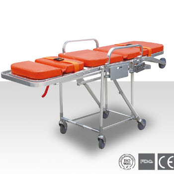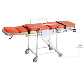 DW-AL101救護車擔架技術特點:上車部位有兩個輪子,高度可三檔調節,適合不同高度的車廂。防水海綿墊,頭部可調節,使病人舒適。配有自動保險鎖,上車時可以自動打開。折腿機構可由兩邊把手控制。僅需一名救...